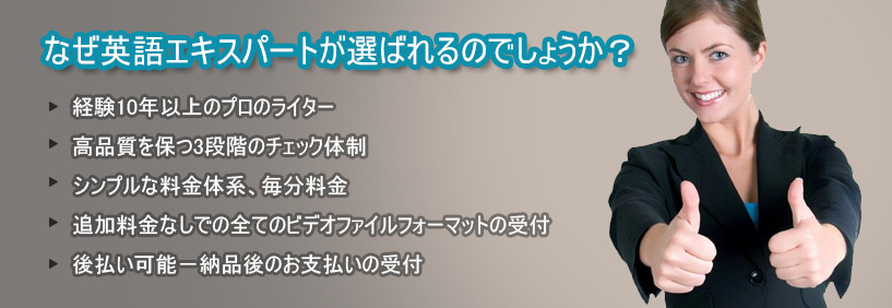 Eigoexpertsは業界で最高品質の英語テープ起こしを提供しています。1分あたり150円からのテープ起こしサービスを、迅速な納期でお届けします。英語エキスパートは、2種類のテープ起こしサービスを提供しています。
